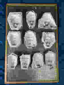 10 molds of Skins/Portraits of the project FROM SKULL TO SKINS. 2 by expressions. Sculpted on the 5 écorchés casted in Monster Clay.